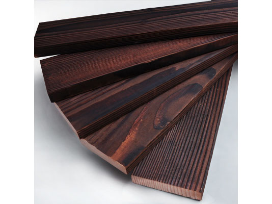 2.)完全天然,環(huán)保綠色。表面炭化木采用天然百年木材,生產(chǎn)過程中不添加任何有害防腐藥劑,也不產(chǎn)生任何環(huán)境污染問題,只是采用氧焊槍燒烤,使木材表面具有一層很薄的炭化層。